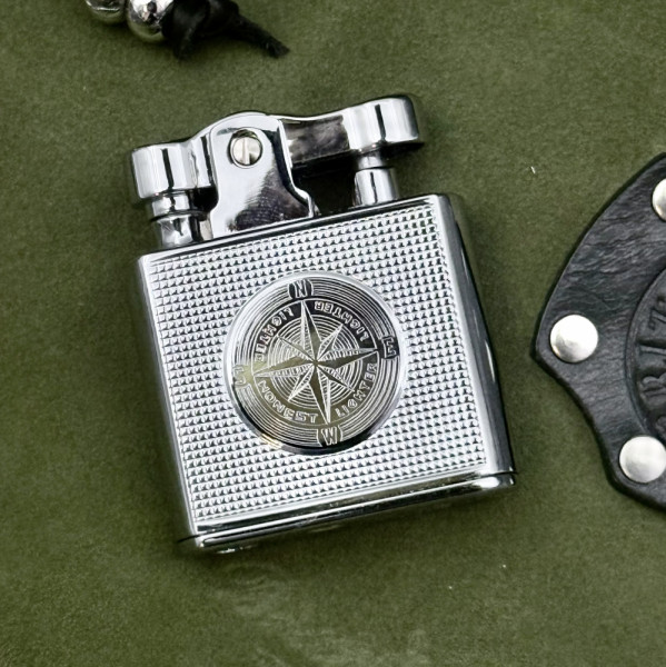 🧭 Елегантен дизайн с гравиран компас. Изисканата гравюра придава стилен и отличителен характер на запалката. Нежно и компактно тяло, фини линии.