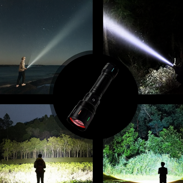 Този професионален фенер комбинира 30W мощност, алуминиево тяло от авиационен клас и ярк LED чип с 5800 лумена, осигурявайки осветеност до 1500 метра разстояние.
