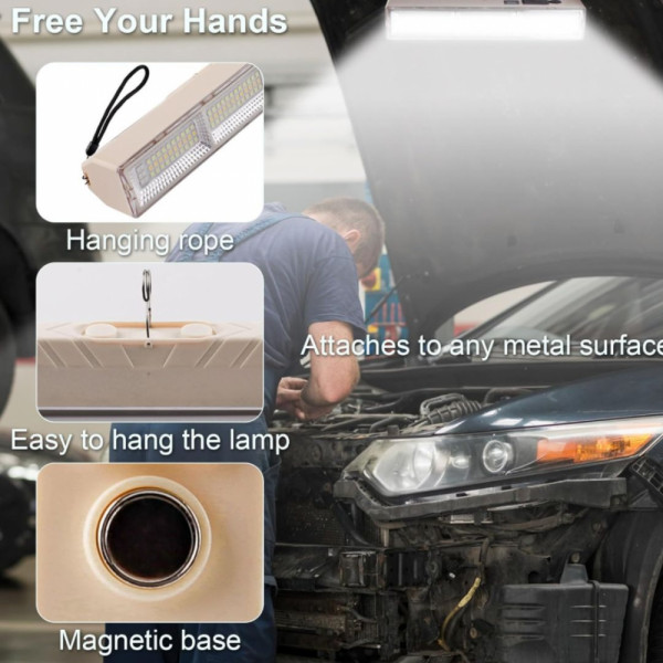 Със своя магнитен монтаж, кука за закачане и презареждаема батерия, тази лампа ви осигурява ярка светлина, пълна свобода и сигурност навсякъде.