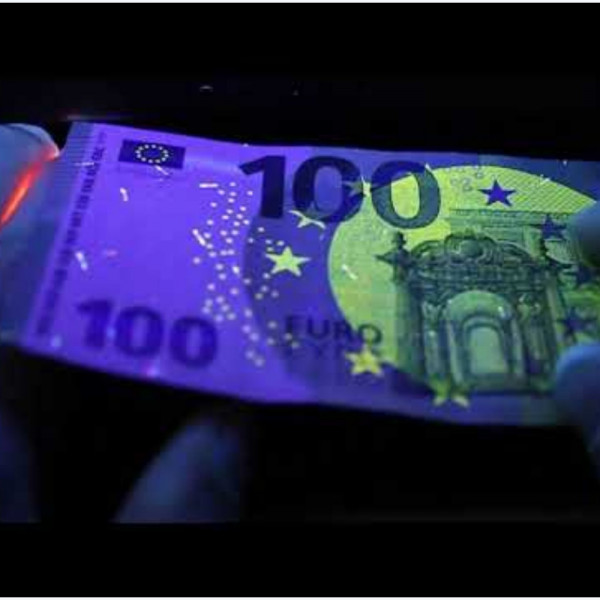 Когато осветите банкнотата с ултравиолетовата светлина на детектора, тези елементи светват ясно, а при фалшивите липсват.