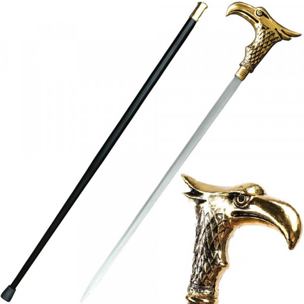 Елегантен и стилен бастун с кинжал и метална дръжка с глава на златен орел SW-18, BFO