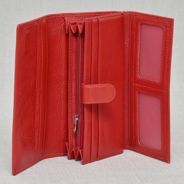 Елегантно червено портмоне портфейл от естествена кожа с много отделения, удобно и практично - RED - 87016