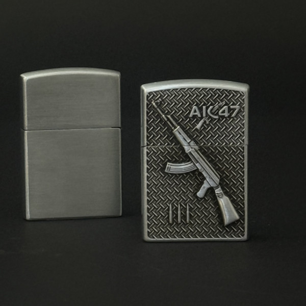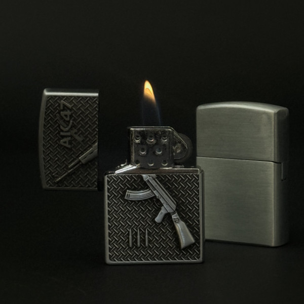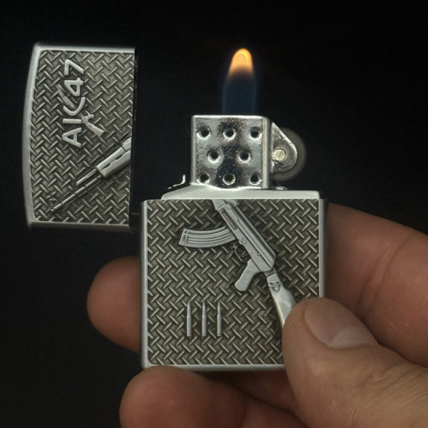Класна метална запалка AK-47 ,#1047, класически дизайн, на газ с камъче и подаръчна кутия