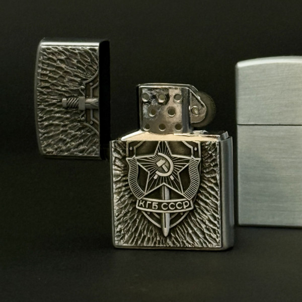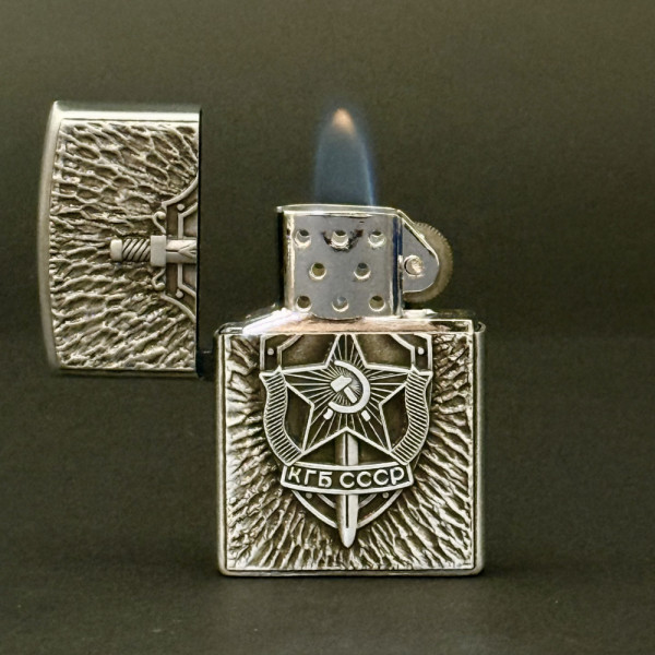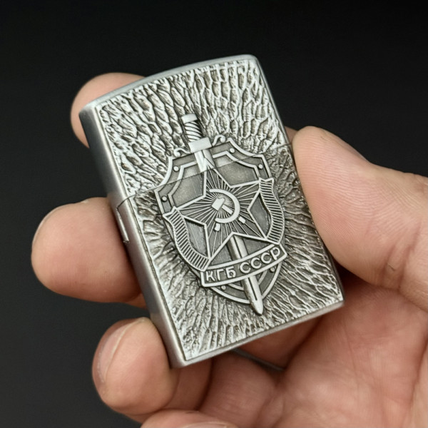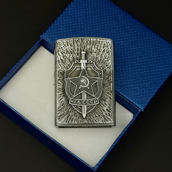 Класна метална запалка КГБ СССР,#1176, класически дизайн, на газ с камъче и подаръчна кутия