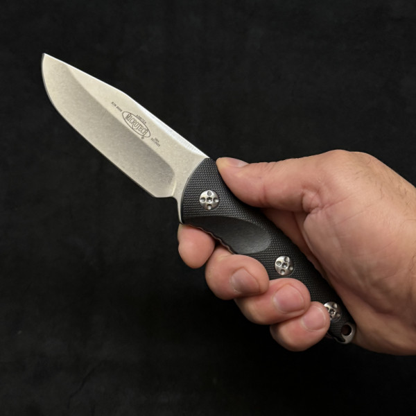 Компактен тактически / ловен нож MICROTECH Arbiter Compact, фултанг стомана M390, дръжка G10, кания карбон