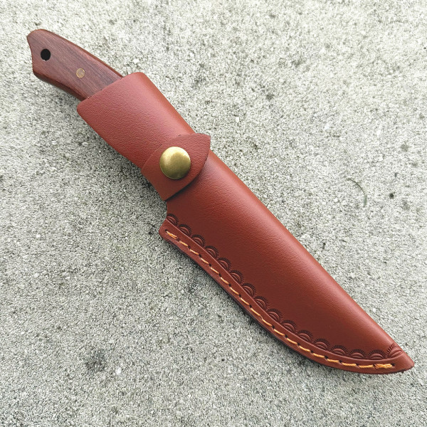 Компактен ловен нож DER HUNT 186 STING, стомана 5CR13MOV, дръжка от червено сандалово дърво, кожена кания