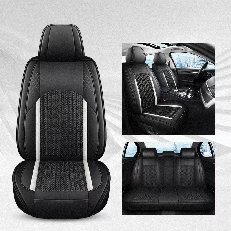 Комплект Луксозна универсална тапицерия кожа с текстил, Черно и бяло за Предни и Задни седалки