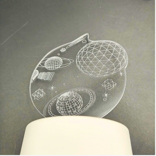 Тази уникална 3D LED лампа с космически дизайн създава впечатляващ ефект на дълбочина и светлина. Гравираните планети, орбити и космически елементи се осветяват от LED основата и изглеждат като триизмерна галактика, която сякаш се носи във въздуха.