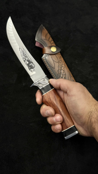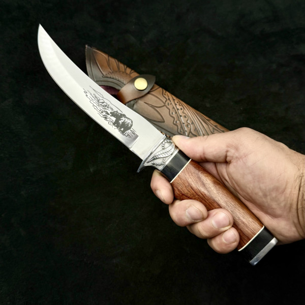 Ловен нож WPKOPYA 207 HUNTING BEAR, стомана 5CR13, кожена кания