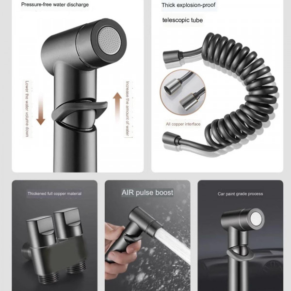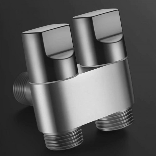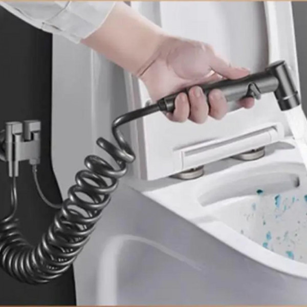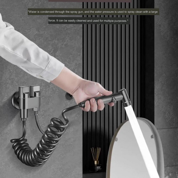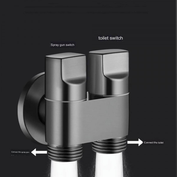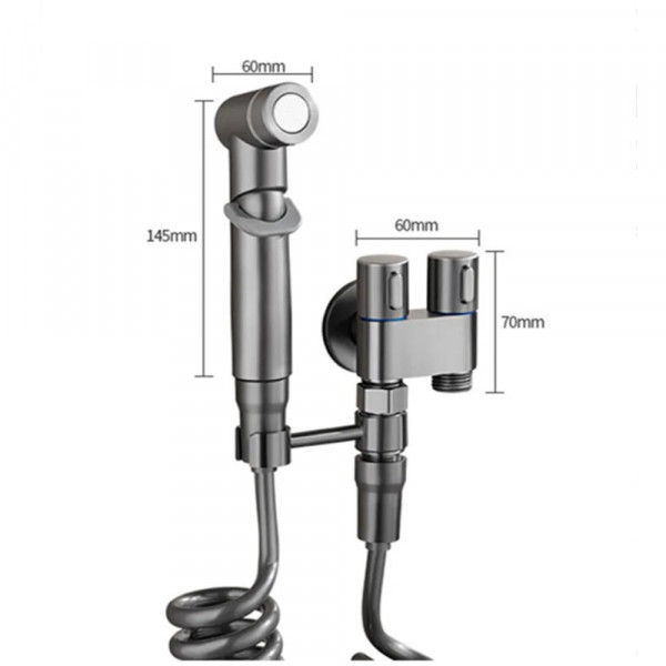 Душ комплект за биде с пръскачка за вода за тоалетна, спестяване на място, двойно управление, изход „един в два“, ъглов вентил