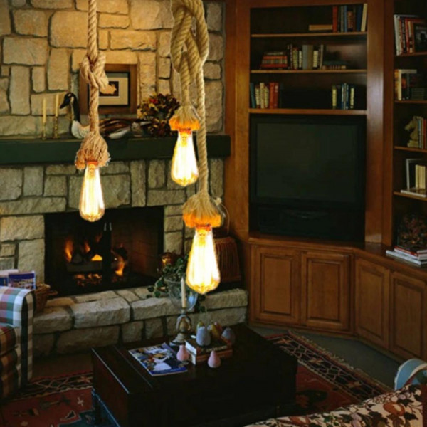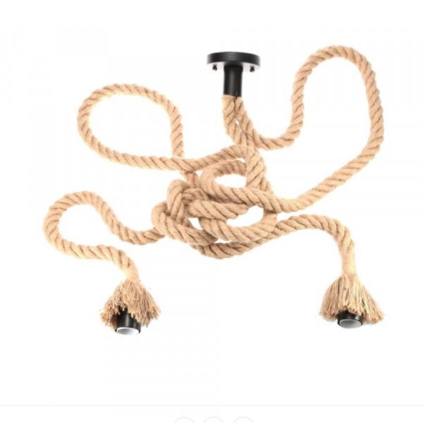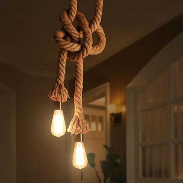 Луксозна двойна висяща лампа конопено въже, винтидж, фасонга Е27, метален обков, пендел, без крушка, BF22