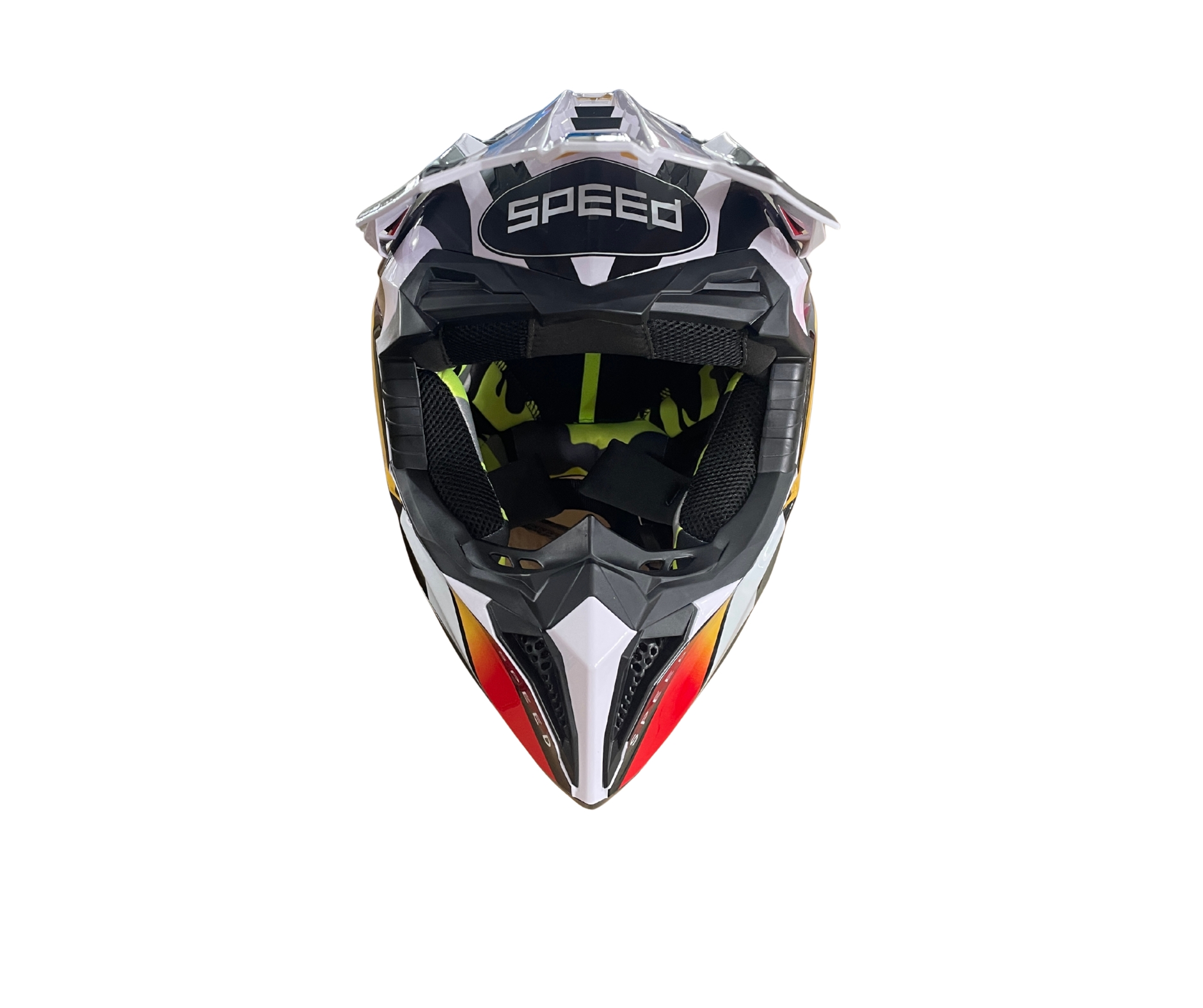Мотокрос - Ендуро каска за мотор, ATV, велосипед – размер S (53–54 см) бяла с жълто/син дизайн