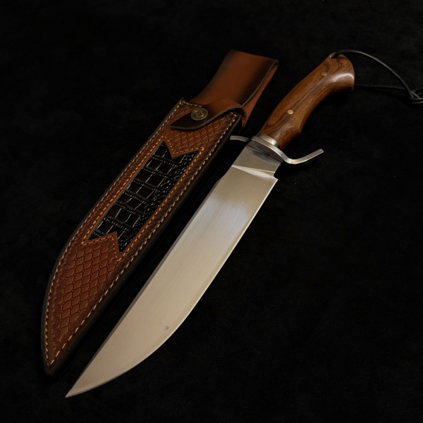 Огромен ловен/тактически нож WPKOPYA 373 DUNDEE, стомана 5Cr13Mov, дръжка орех, кожена кания