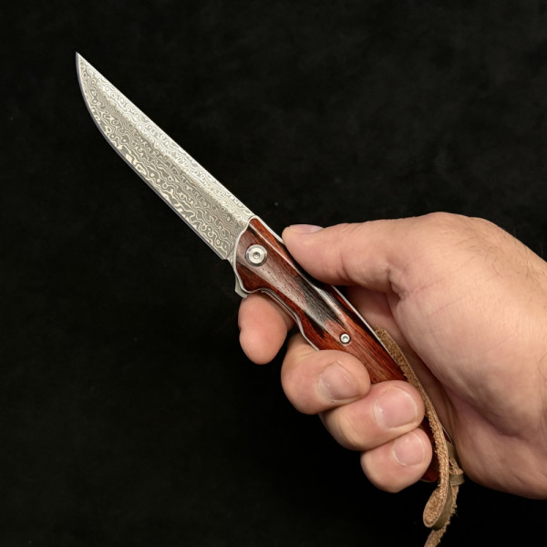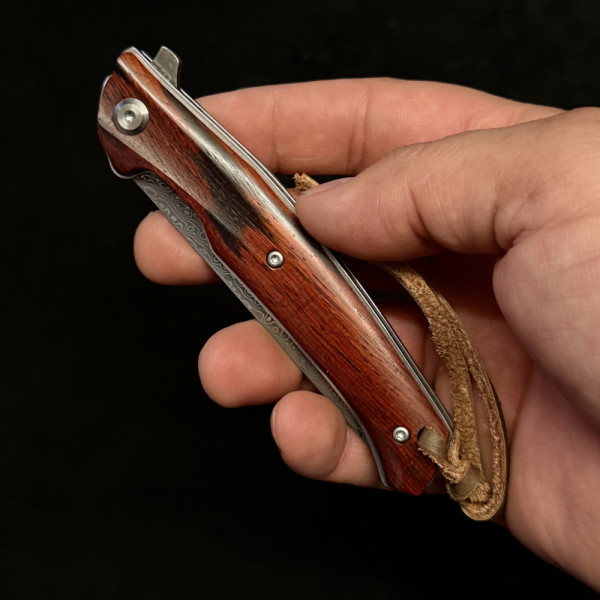 Премиум клас сгъваем полуавтоматичен нож. Безотказно отваряне с показалец. лек и бърз механизъм. Чудесна стомана D2, махагонова дръжка. Страхотен сгъваем нож