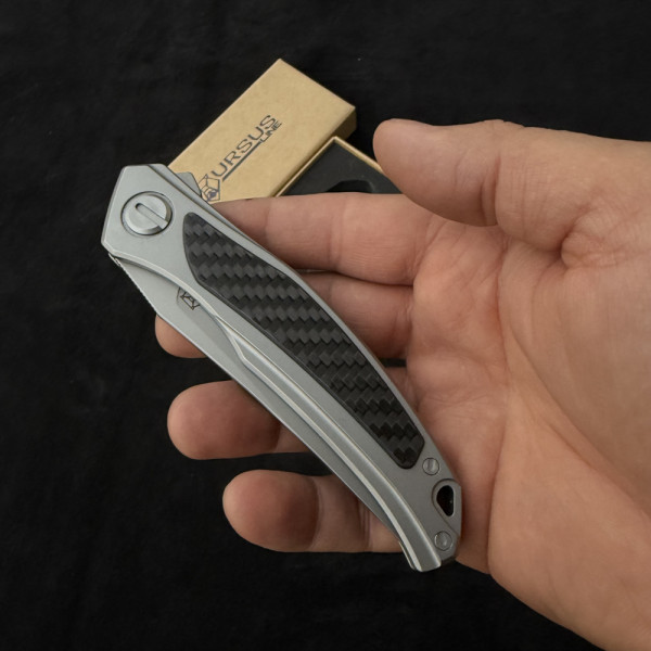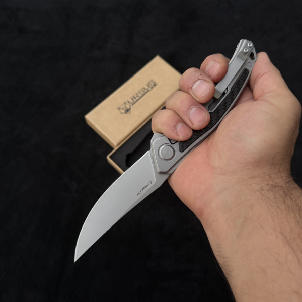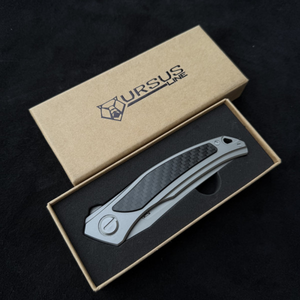 Премиум сгъваем нож URSUS Line GREY от прахова стомана Cromax PM, дръжка титан и карбон