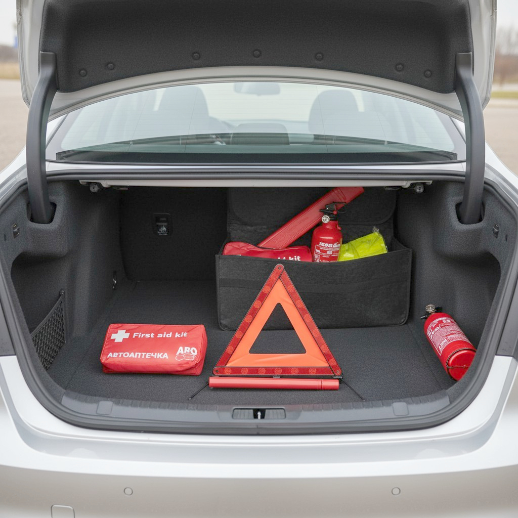 Пълен авариен комплект за автомобил - практично и компактно решение за безопасност.