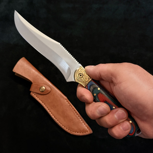 Руски ловен нож ОХОТНИК Ориент 363, фултанг стомана 9Cr13Mov, кожена кания