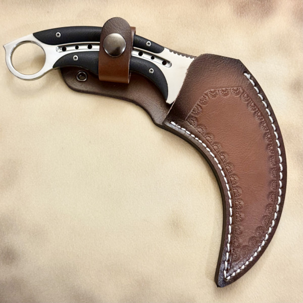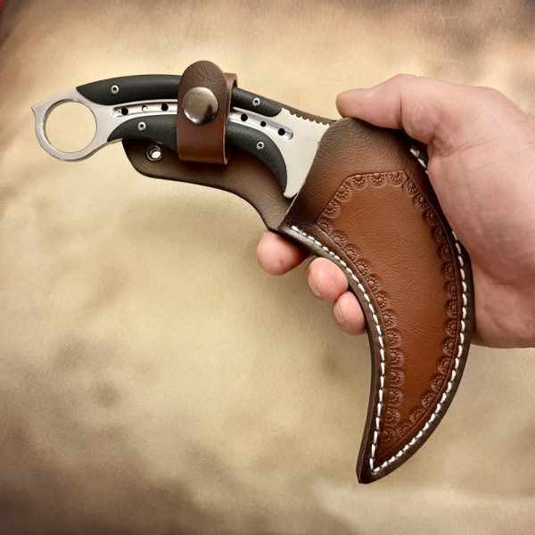 Ръчно изработен дизайнерски карамбит на Тод Бег Todd Begg Tiger Karambit с кожена кания