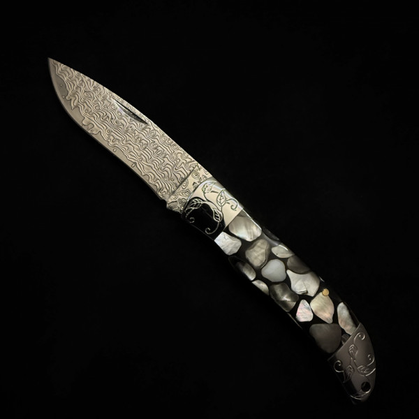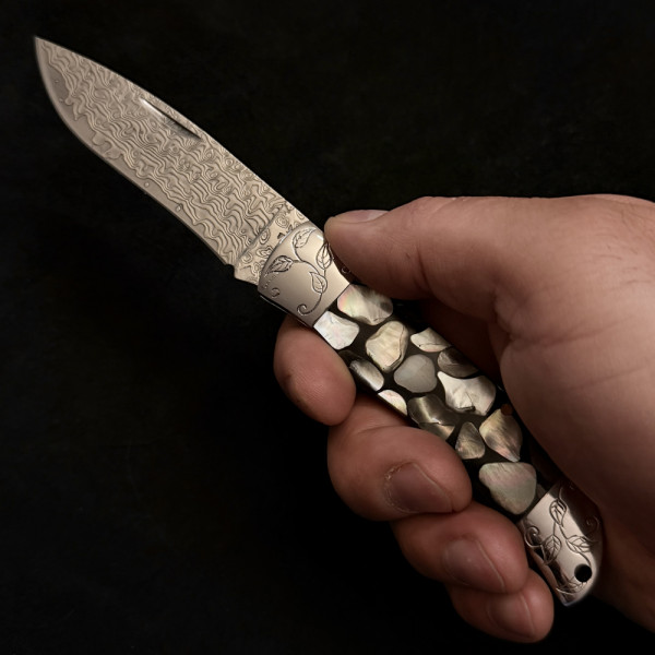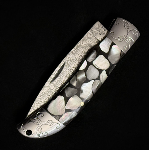 Сгъваем немски ловен нож Der HUNT МК-11 PEARL, дамаска стомана VG10/69L, седефена дръжка