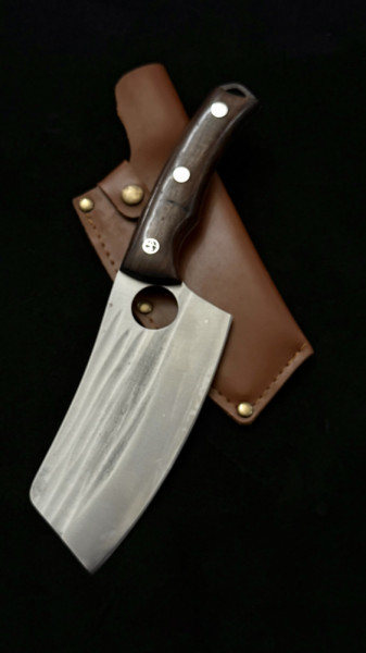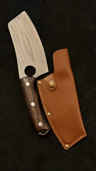Широк японски кухненски нож AINA Chuka Bocho с ръчно ковано острие закалена стомана, фултанг, дървена дръжка венге