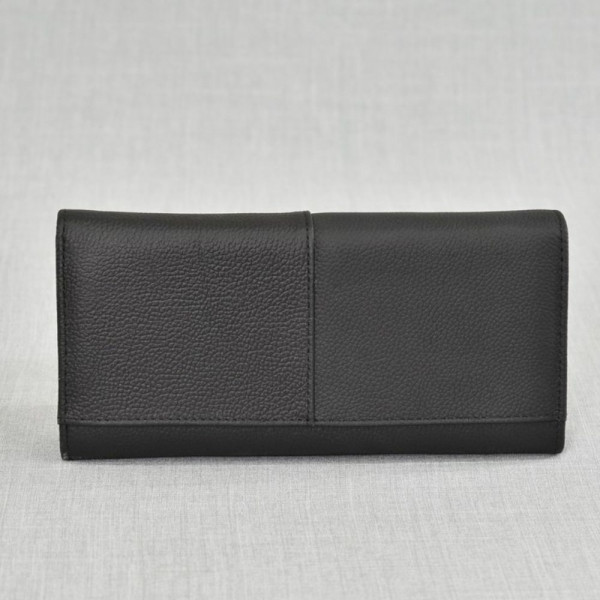 Стилно черно портмоне от естествена кожа с много отделения - BLACK - 4205
