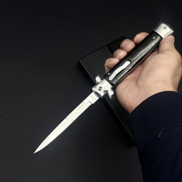 Тежък италиански автоматичен нож AKC Leverletto BLACK by Bill DeShivs Cosa Nostra модел за "мокри поръчки" ;) Стомана D2