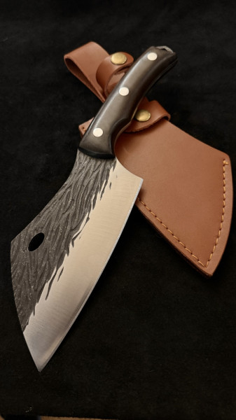 Тежък кухненски нож - сатър - AXE 132, фултанг, дръжка махагон, манганова (хадфийлдова, "железопътна") стомана