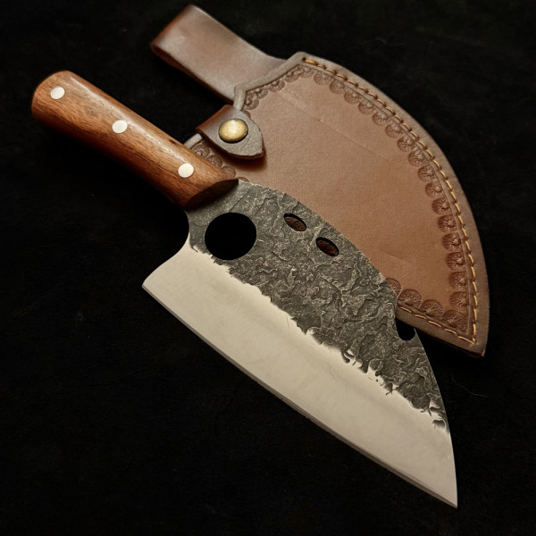 Тежък кухненски нож - сатър - AXE 144, фултанг, дръжка ясен, манганова (хадфийлдова, "железопътна") стомана