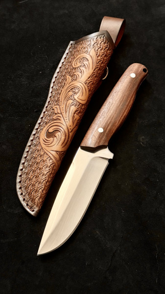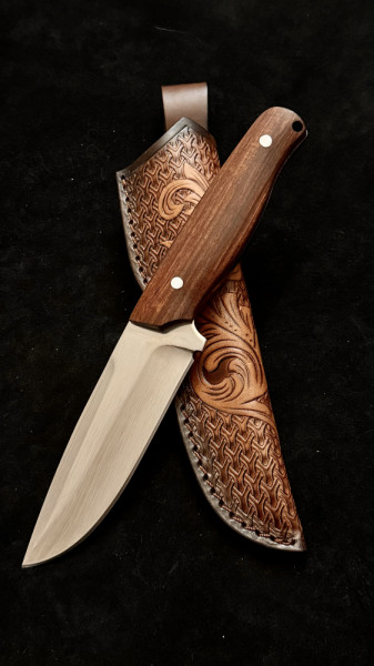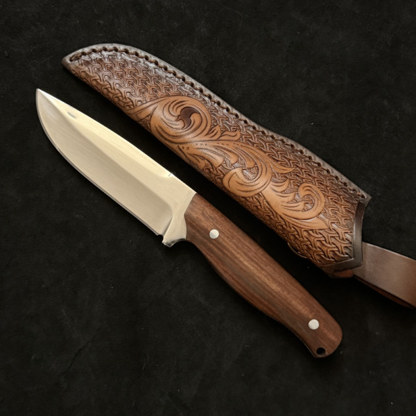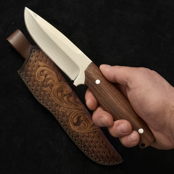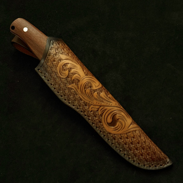 Тежък немски ловен нож Der HUNT 263, фултанг стомана 9Cr13Mov, дръжка череша, кожена кания