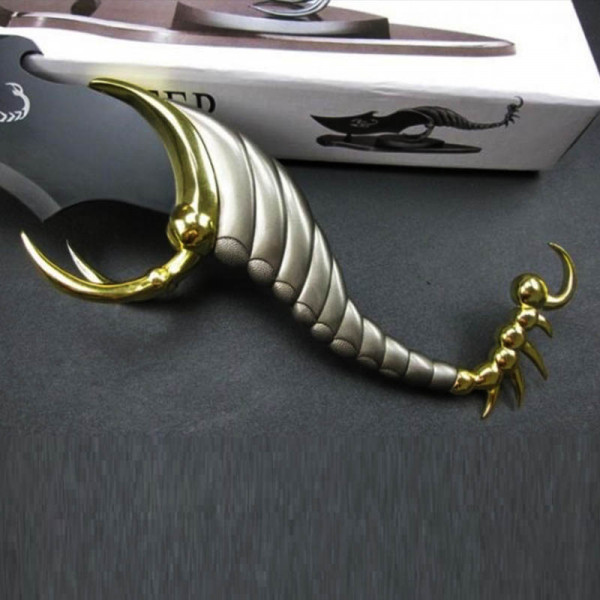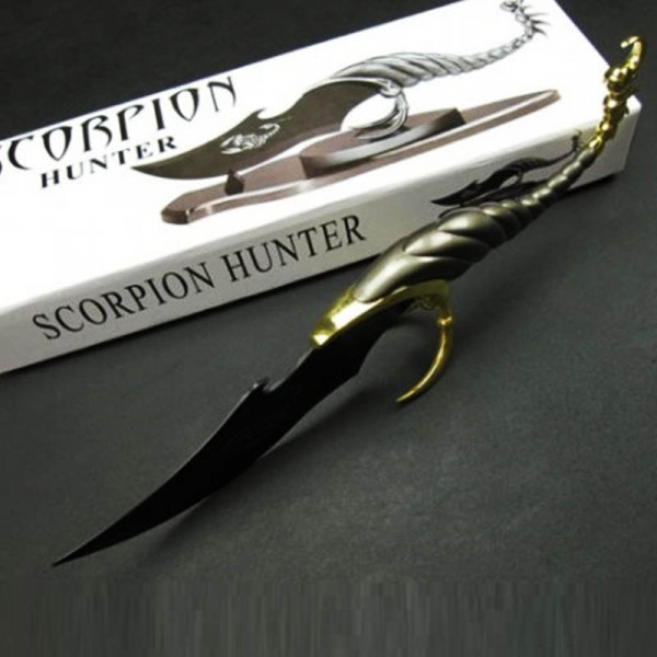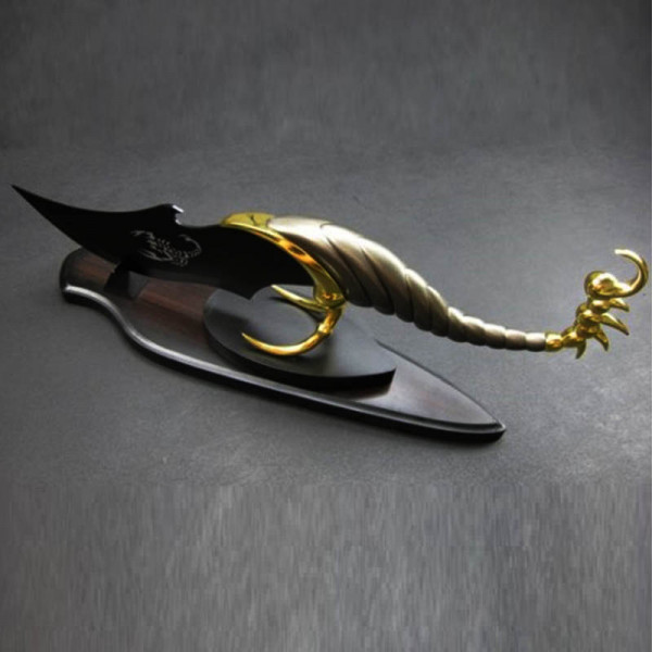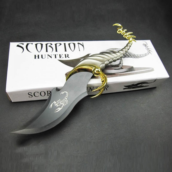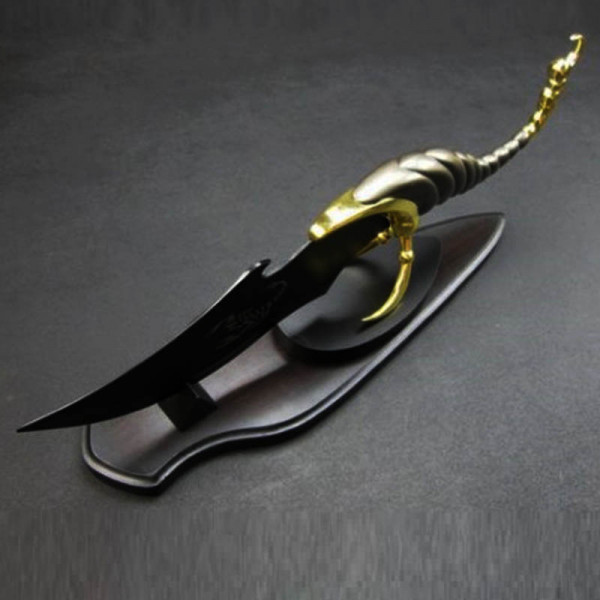 Трофеен подаръчен нож SCORPION HUNT с позлатена дръжка и дървена поставка