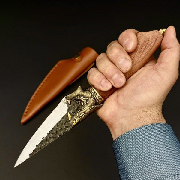 Универсален кухненски нож Alpine Utility DRAGON, за малки задачи, белене,оформяне, стомана 5Cr13Mov, дръжка розово дърво и месингов DRAGON гард