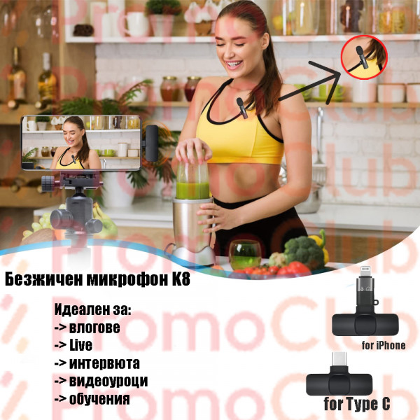 Двоен безжичен микрофон за смартфони Plug and play, Type C K9 -35%