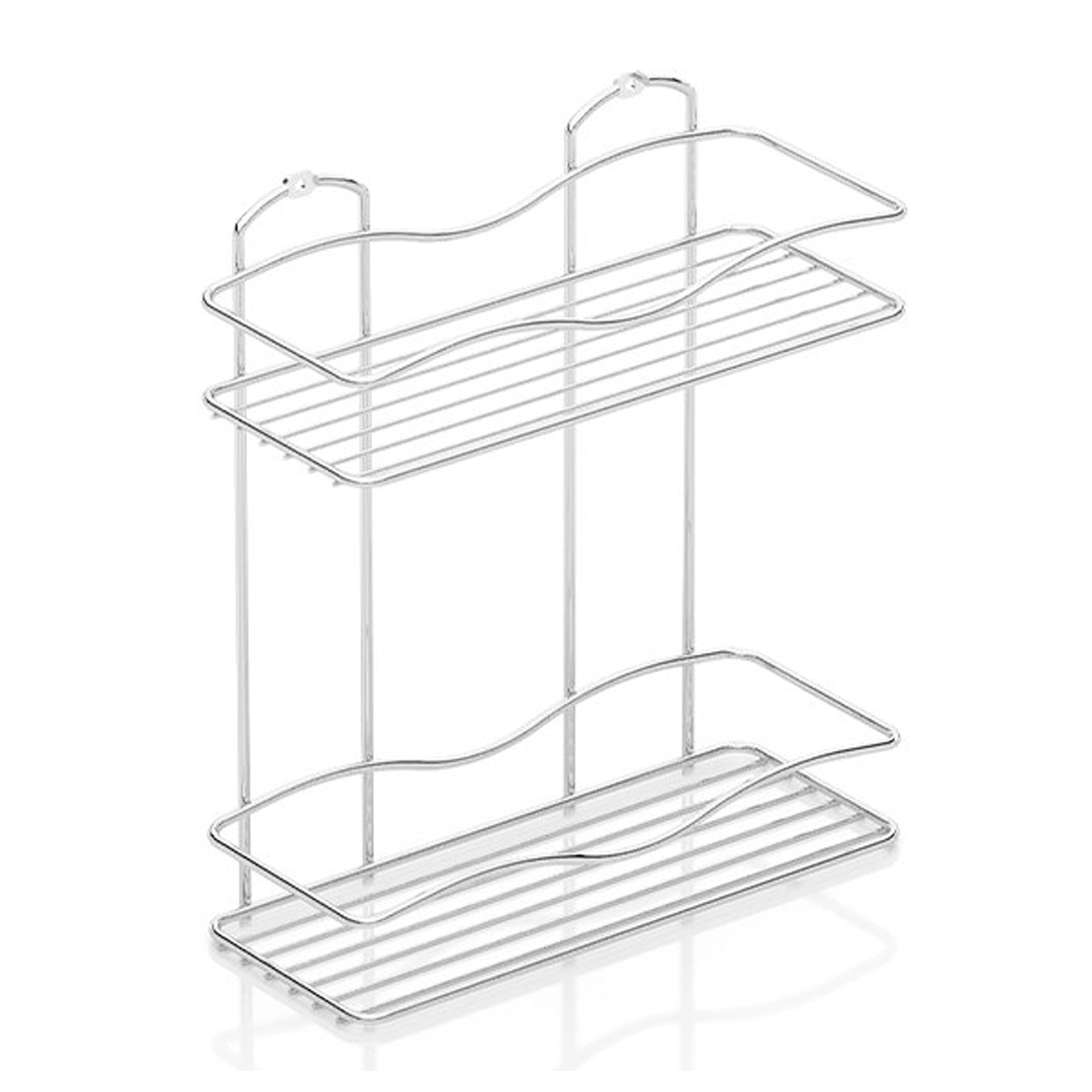 Ъглова етажерка за баня на 2 нива TEKNO TEL BK 042, 21х21х32 см, Закрепване с дюбел, Сребрист