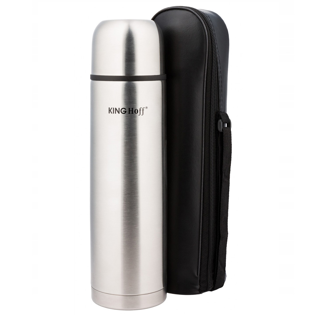 Термос Kinghoff KH 4054, 1 литър, Двойни стени, Калъф, Инокс