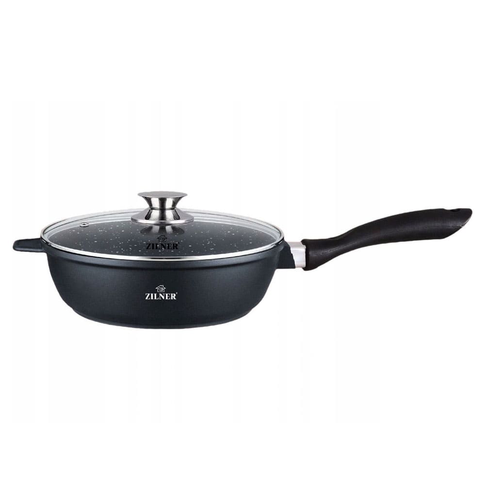 Тиган с капак Zilner ZL 7028, 24 см, Керамично покритие, Индукция, Черен