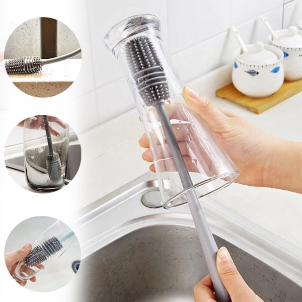 Почистваща мулти четка с диспенсър за веро/сапун/препарат с 3 сменяеми глави