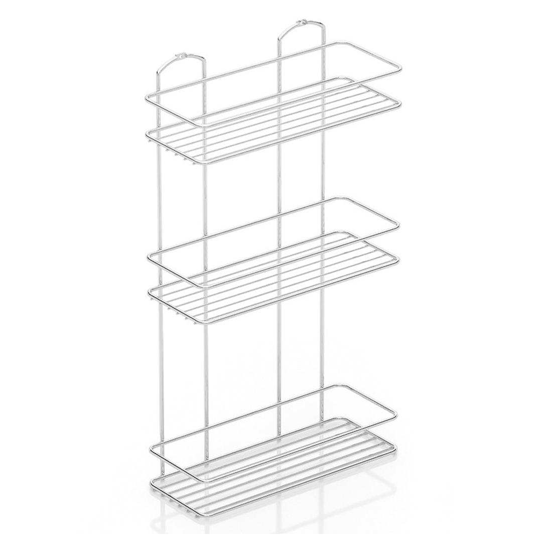 Правоъгълна етажерка за душ кабина на 3 нива TEKNO TEL BK 066, 25х10х76 см, Окачена система, Хром