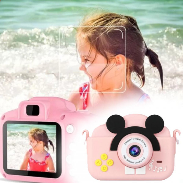 💟Детска дигитална РОЗОВА камера-фотоапарат с ослепителен дизайн и гумено калъфче MINI MAUS, 1080P