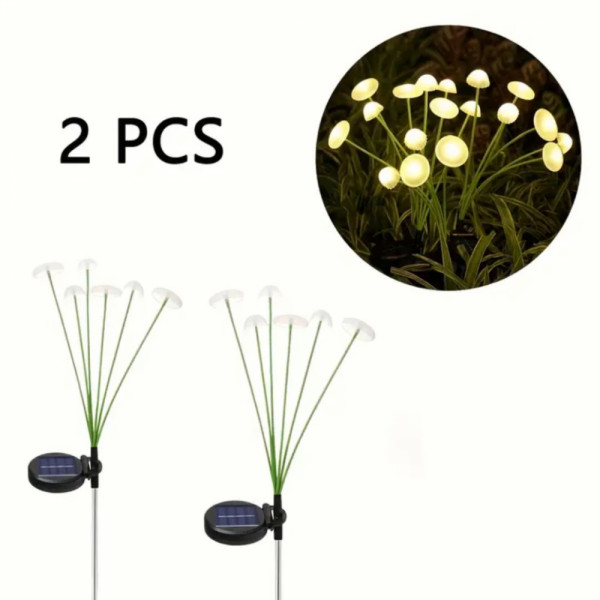 🍄 ГРАДИНСКИ СОЛАРНИ ЛАМПИ „СВЕТЕЩИ ГЪБКИ“ – 2 броя в комплект, по 6 LED лампички на всяка - 604