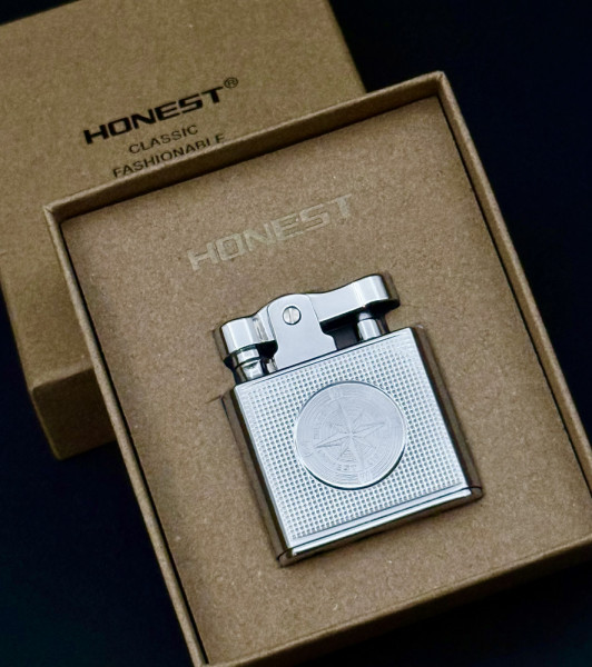 Металната запалка Honest Compass е елегантен аксесоар, създаден за хора, които ценят качеството, класическия дизайн и надеждната изработка. Тя съчетава стилна визия, здрав метален корпус и прецизна изработка, превръщайки се не просто в инструмент за огън, а в аксесоар със собствен характер. В центъра на корпуса е гравиран уникален мотив с компас, символ на посока, откривателство и увереност. Това придава на запалката отличителен и колекционерски вид.