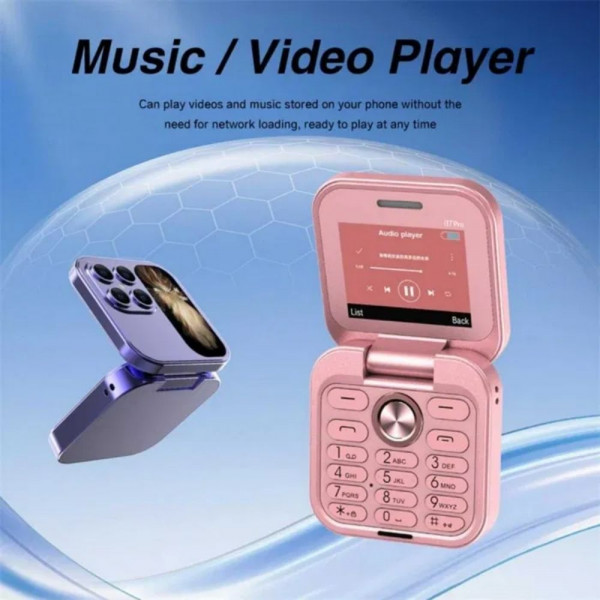 📱 Мини сгъваем телефон i17 PRO – малък размер, голямо удобство. С меню на български! Посочете желания цвят при поръчка! Лилав • Розов • Син • Златен • Черен