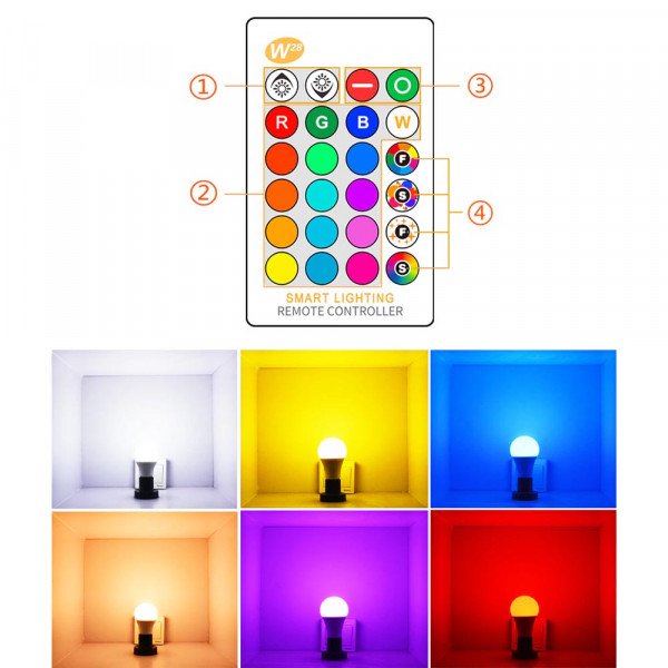 🟡16 цвята LED крушка Е27 с дистанционно, 7W RGBW BULB🟢