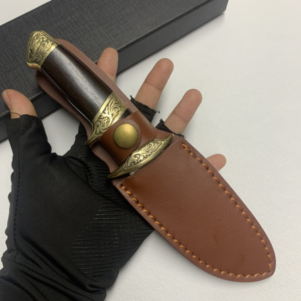 Агресивен ловен нож SPARTA DAMASKUS, стомана G10, кожена кания