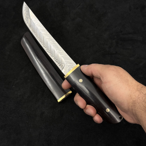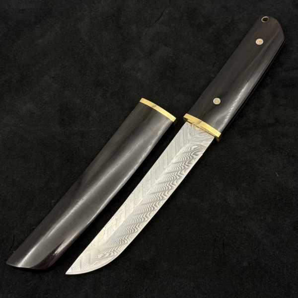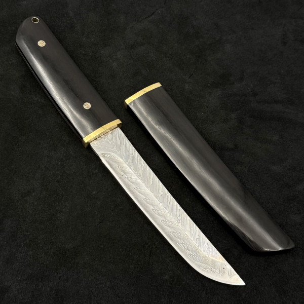 Ръчно изработен нож от дамаска стомана, вдъхновен от класическия японски танто стил. Съчетава вековна традиция, изключителна режеща способност и елегантен минимализъм. Подходящ за колекционери, ценители и като престижен подарък.