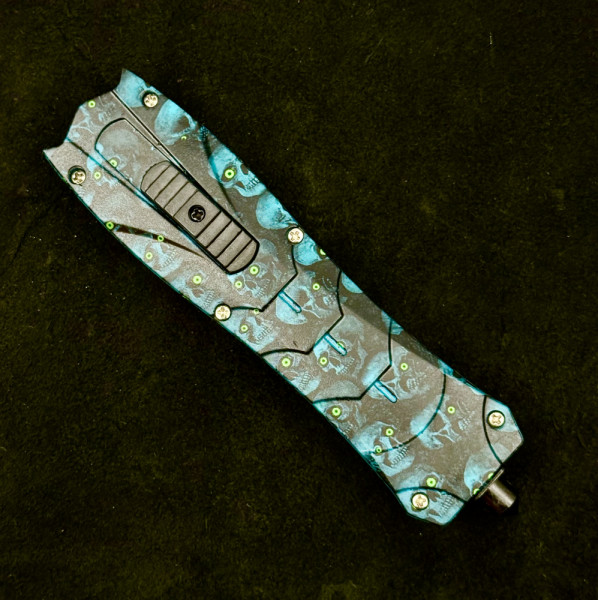 Автоматичен двуостър нож- кама за самозащита BENCHMADE BLUE SKULL