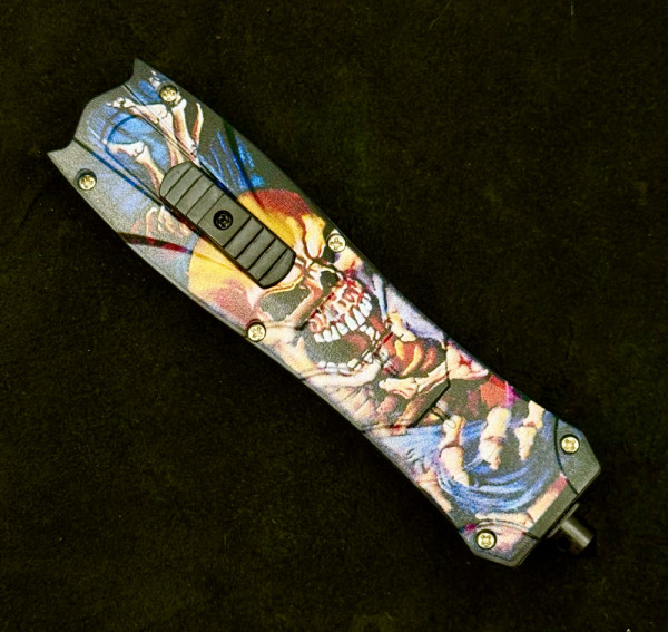 Автоматичен двуостър нож- кама за самозащита BENCHMADE DEAD MAN SKULL