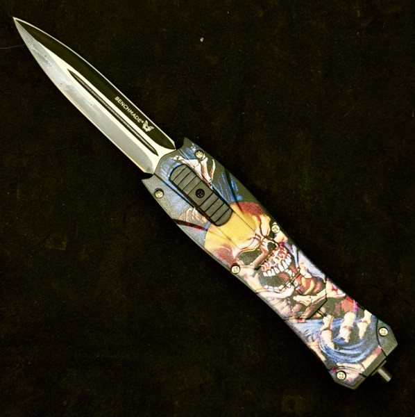 Автоматичен двуостър нож за самозащита BENCHMADE DEAD MAN SKULL, стомана D2