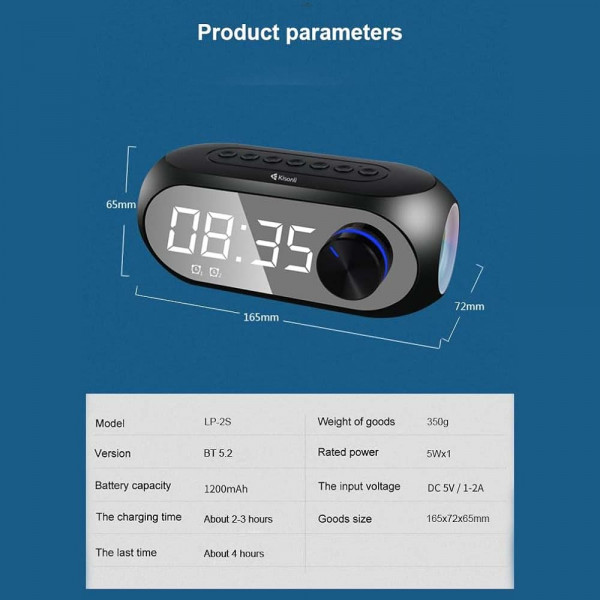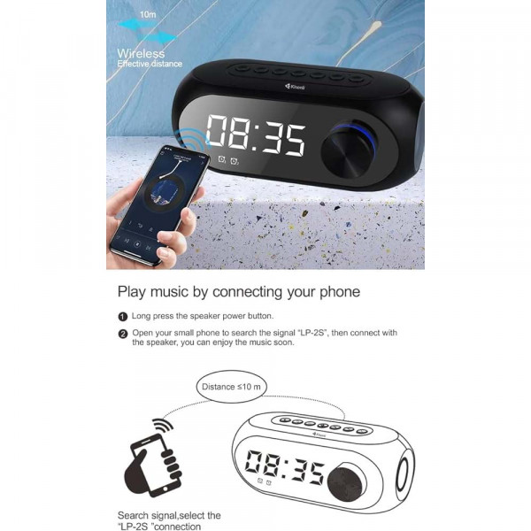 Bluetooth тонколонка - будилник LP-2S KISONLI с LCD дисплей, 5W