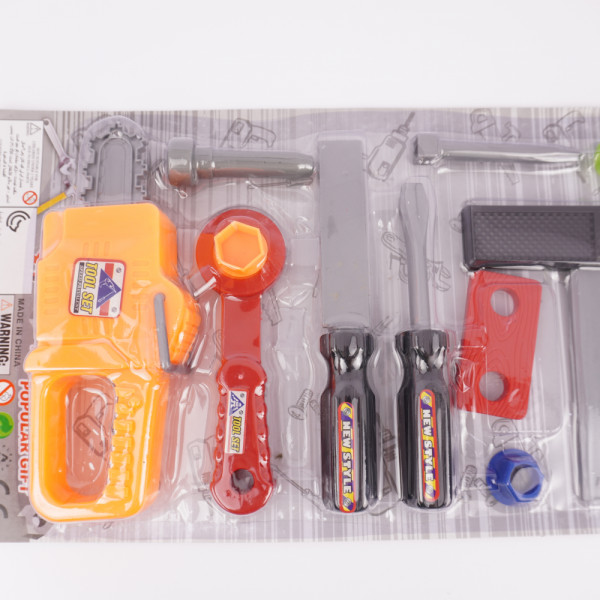 Детска играчка комплект 15 части инструменти трион, клещи, чук, болтове, резачка, отвека, винтоверт, шублер