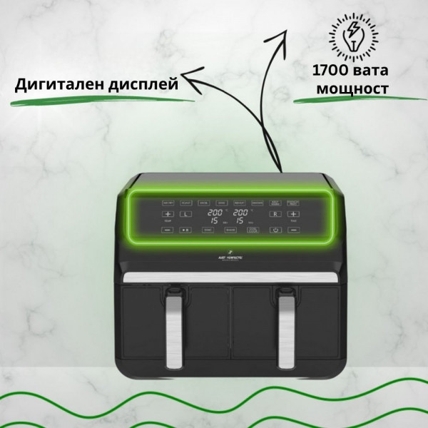 ДВОЕН Airfryer JUST PERFECTO XXL 8 литра с книга 170 рецепти на български – 1700W, 8-в-1, без пържене с олио